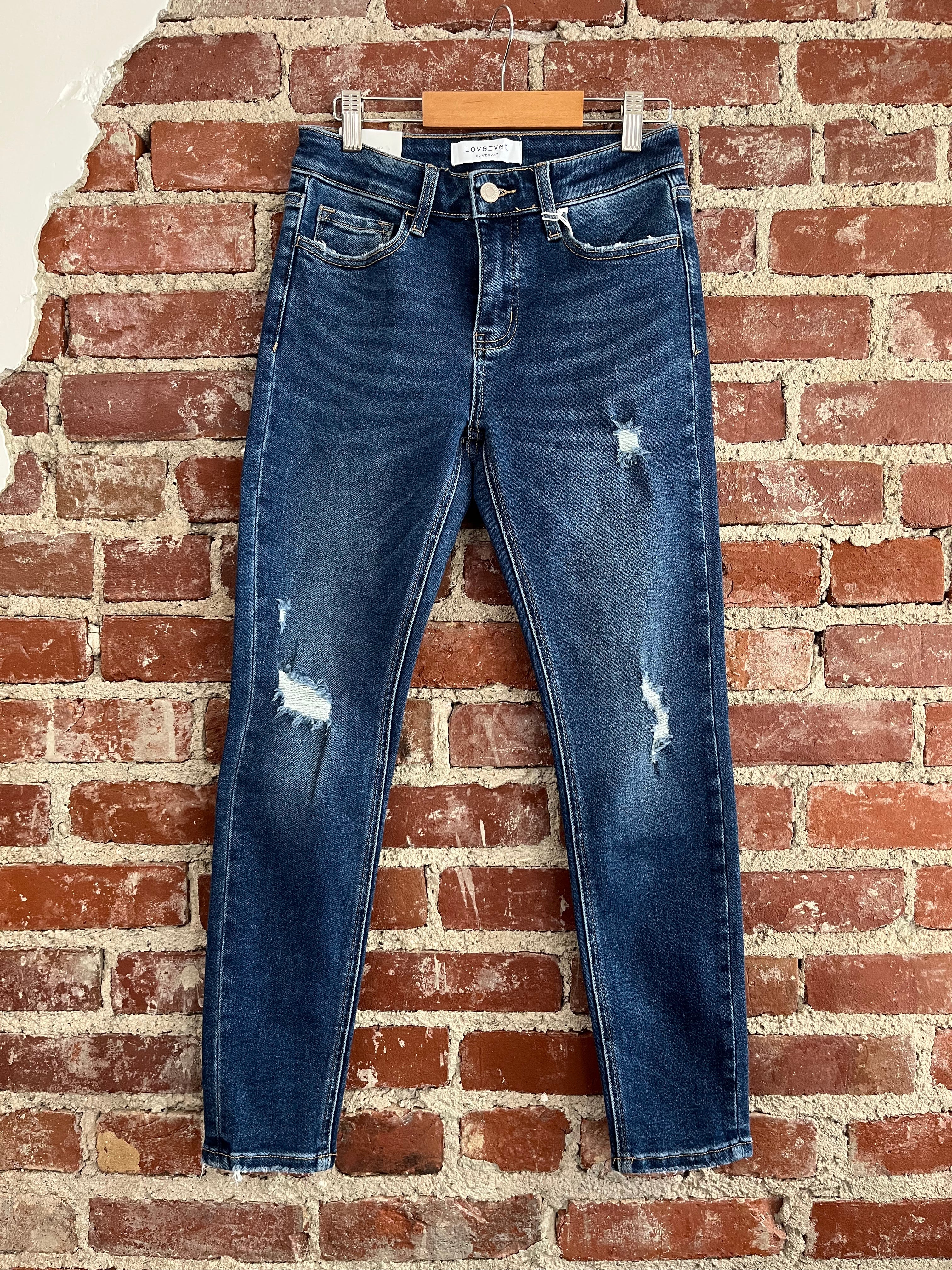 Lovervet Dark Destressed Mid Rise Skinny Jean