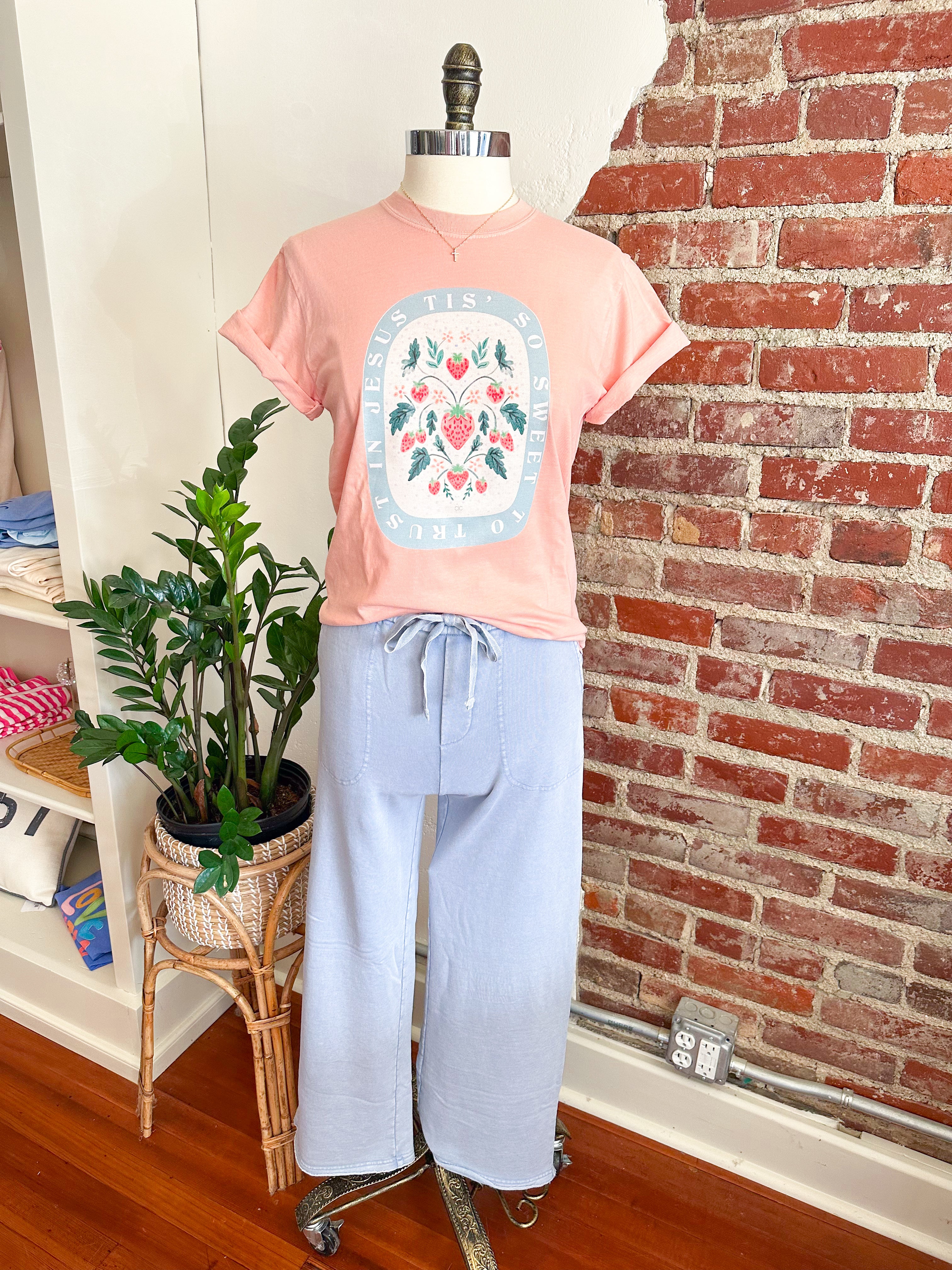 Celebrate the joy of summer with this sweet tee from Comfort Colors! In a blush color with a playful strawberry design, this tee is perfect for anyone who loves to trust in Jesus. So go ahead, add a little sweetness to your wardrobe!