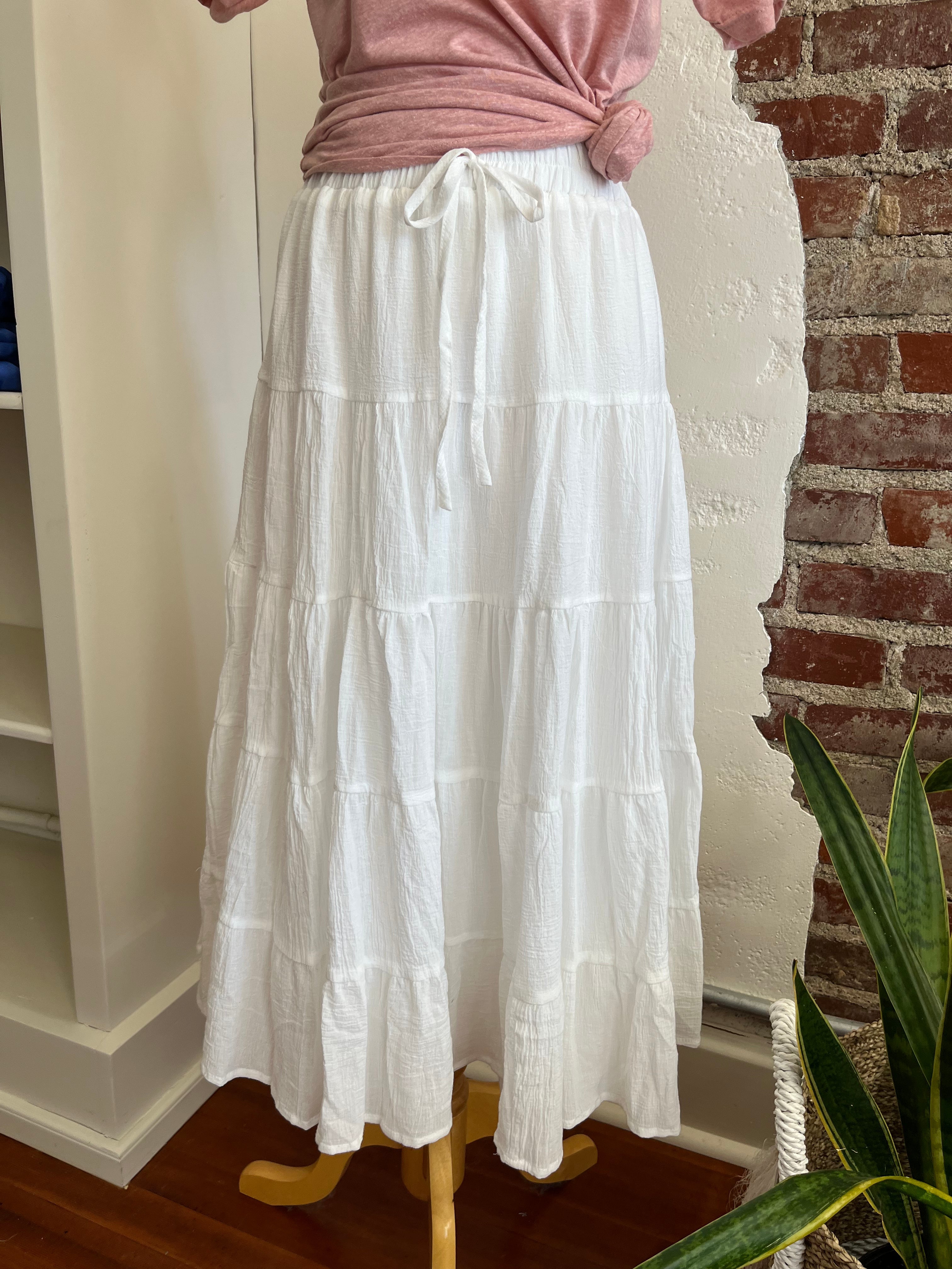 Get ready to twirl in the Ashley Crinkled Tiered Skirt! With its lined interior and elastic waistband, this mid-length skirt is both stylish and comfortable. Perfect for any occasion, from a day out with friends to a romantic dinner date. Say goodbye to boring skirts and hello to fun fashion!