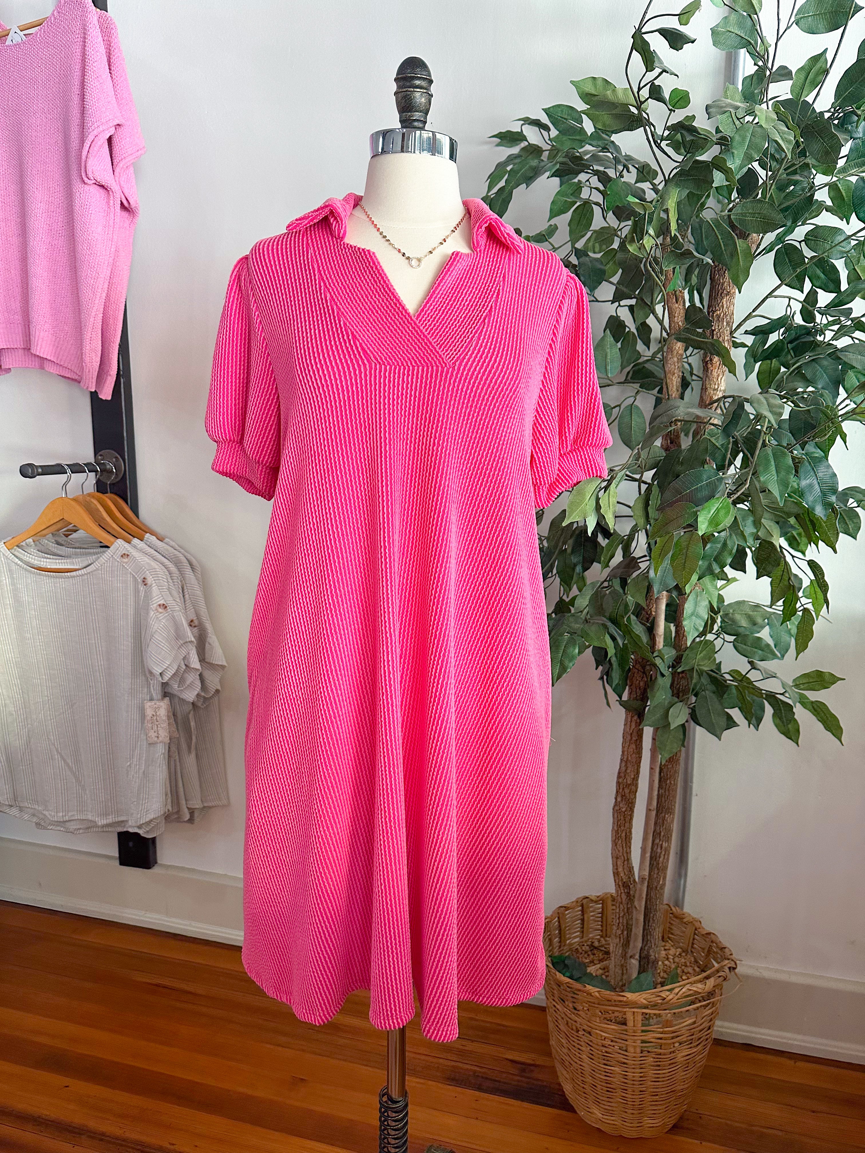 Step into summer with the Natasha Ribbed Comfy Dress in vibrant fuchsia—a playful alternative to shorts! Featuring handy knock-around pockets and a breezy collared design, this dress keeps you cool and carefree all day long. Perfect for sunny adventures, it’s your new go-to for effortless style and comfort.