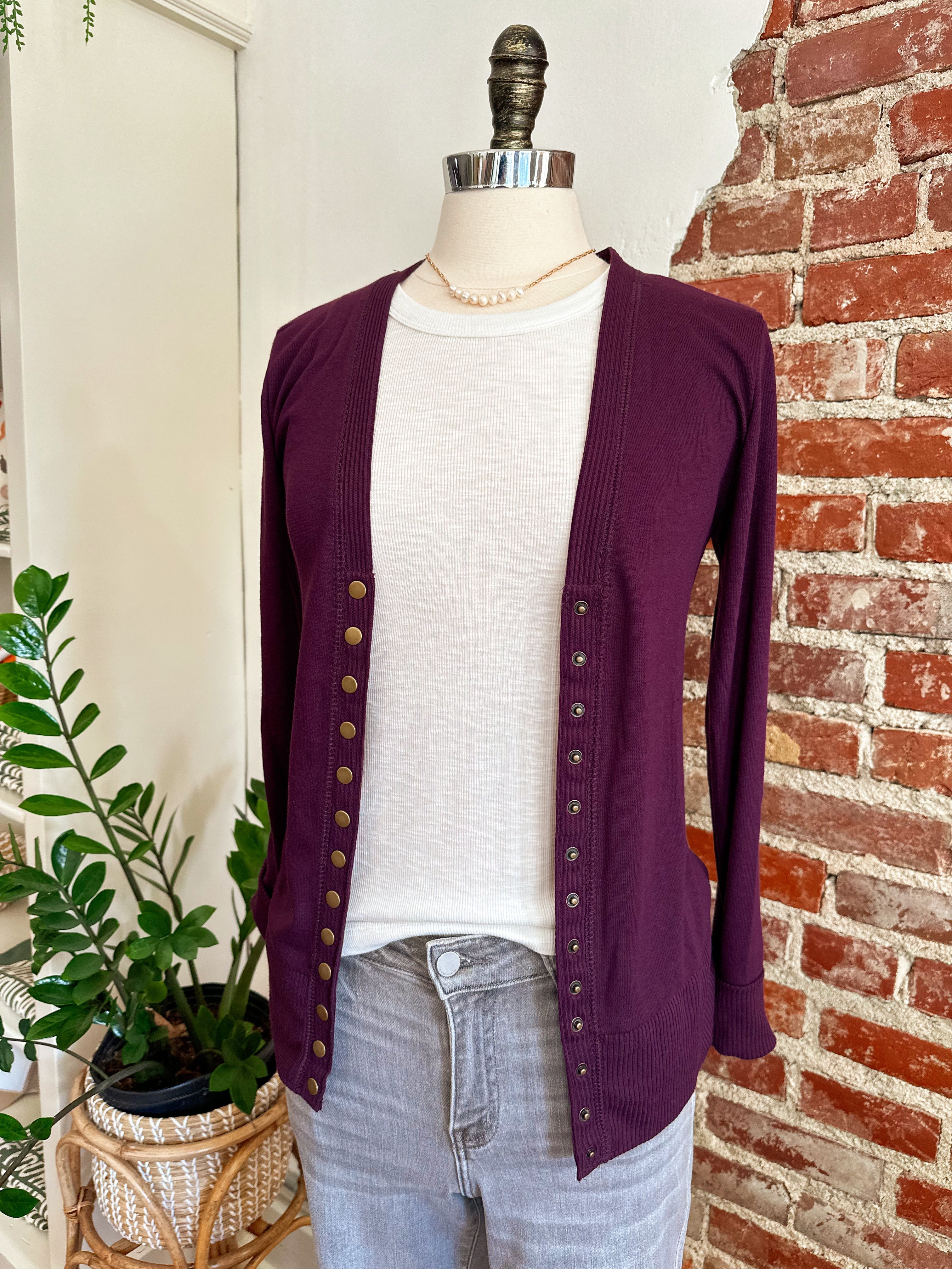 Stay cozy and stylish this fall with our Sally Lightweight Cardigan! Made with a soft light knit fabric, this cardigan is perfect for everyday wear. The snap buttons add a casual touch to this wardrobe essential. Stay comfy and chic with Sally!